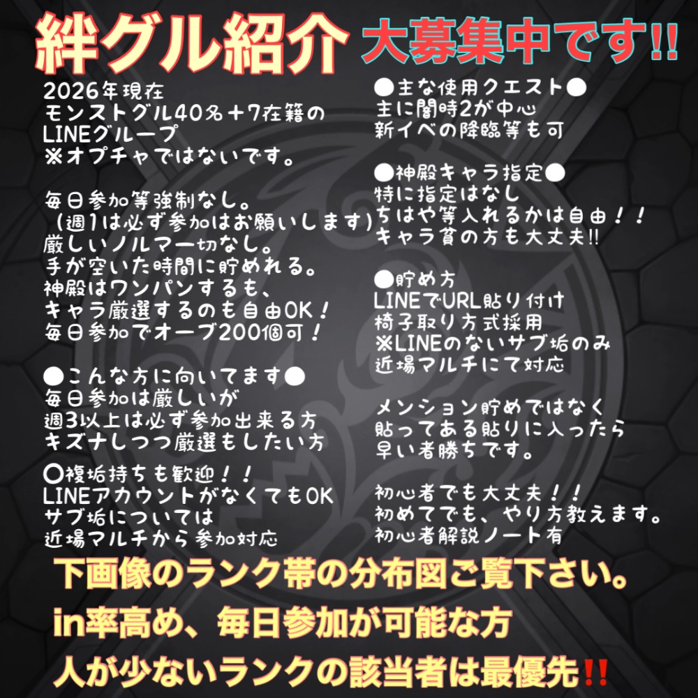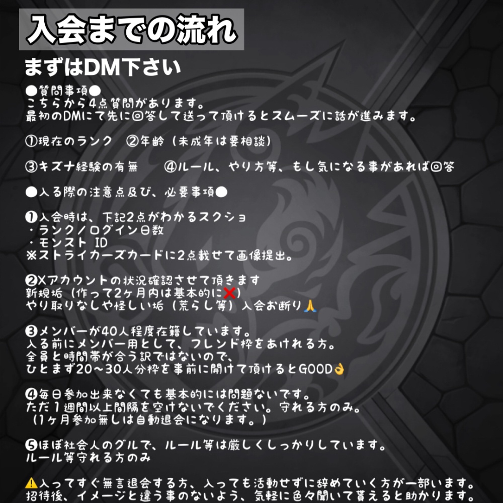 もし入会する流れになると、メンバーとフレンドになる必要がある為、フレ枠だけは各自確保して頂きたいです。